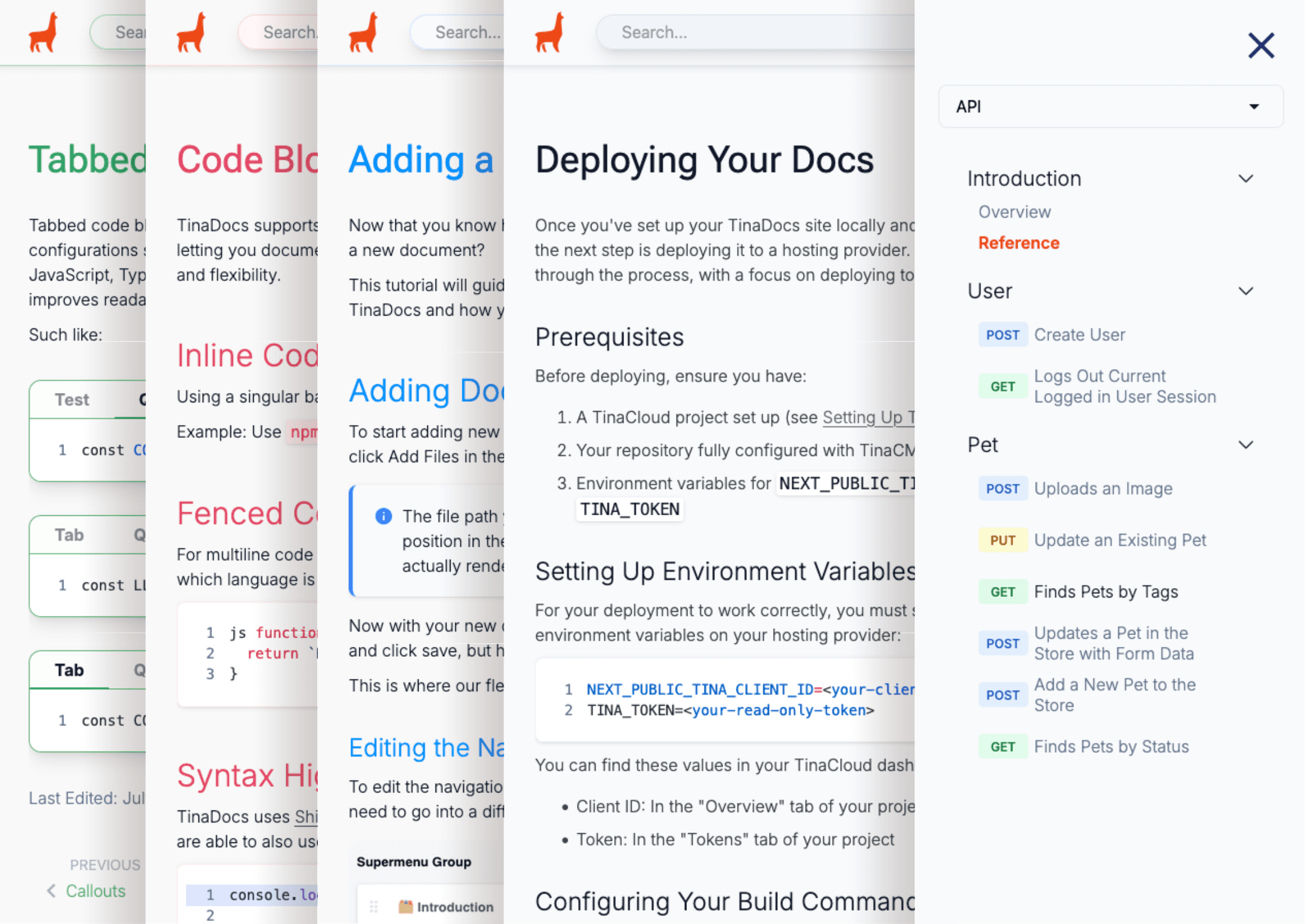 Out of the box, TinaDocs has all the tools to suit several common docs needs.