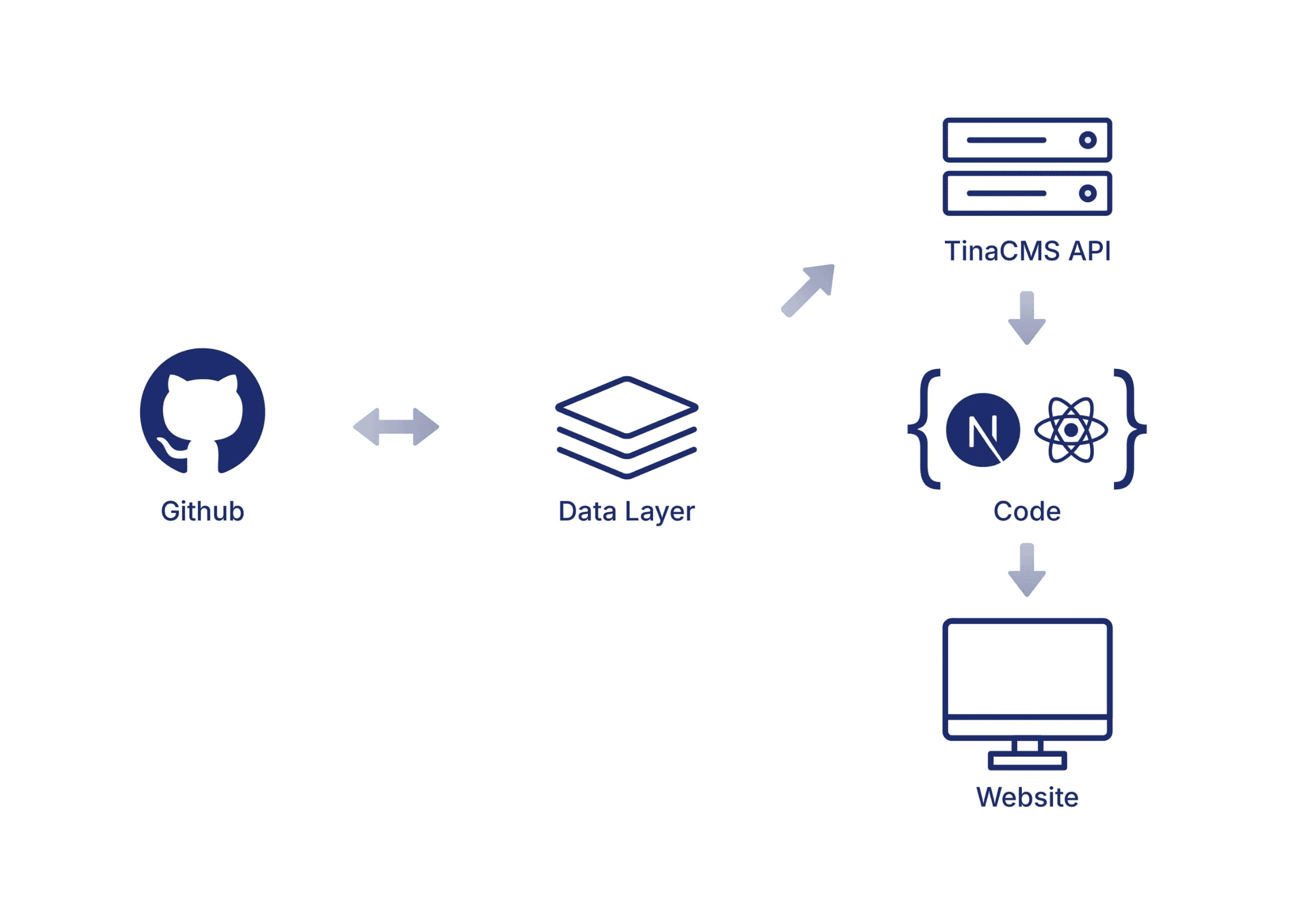 Figure: Data moves from GitHub to your website via the TinaCMS Backend